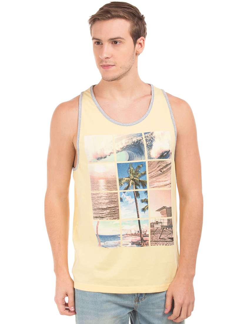 - » yellow front print t-shirt
