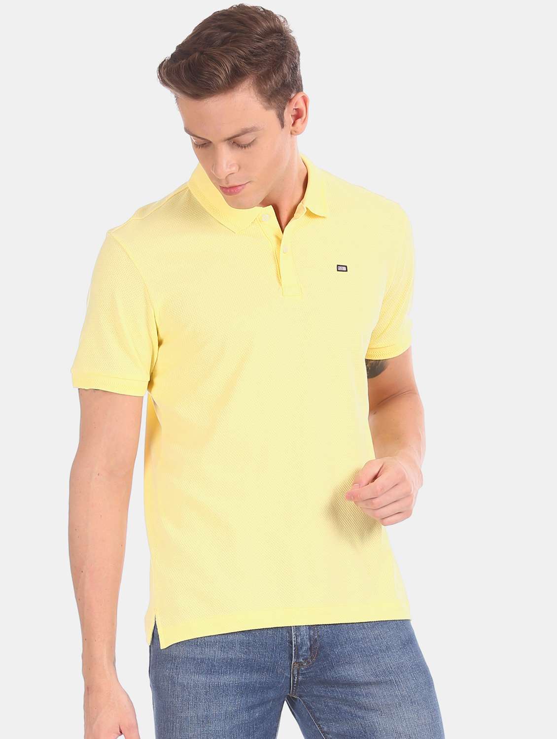 yellow solid polo t-shirt