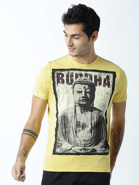 - » yellow printed cotton blend regular t-shirt