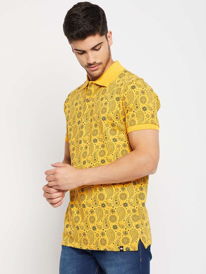 - » yellow printed half sleeves polo neck t-shirt