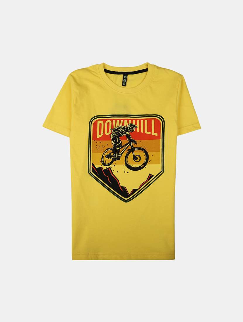 - » yellow printed round neck t-shirt