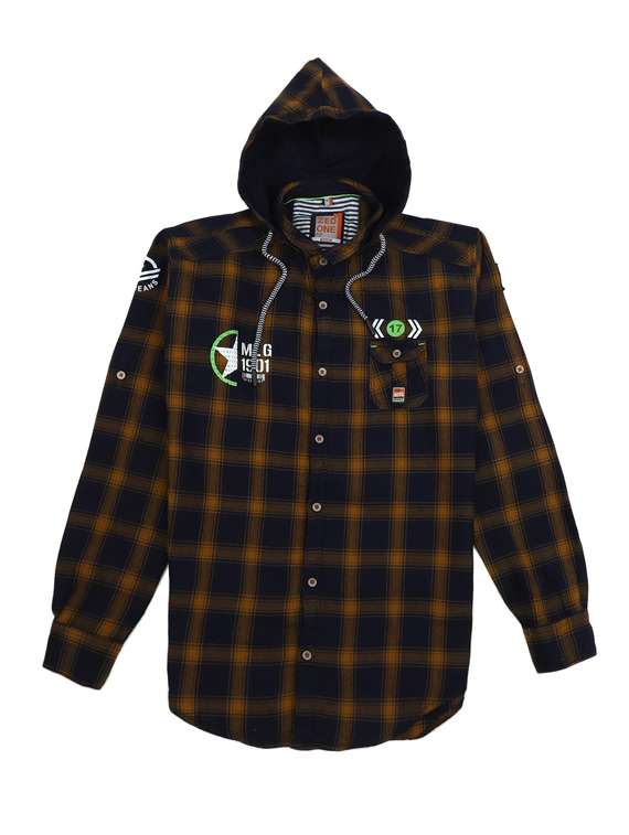 boys checkered hooded shirt - 18648225 - Very Small Image - 1