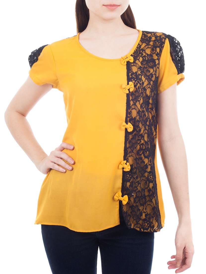 - » yellow crepe regular top