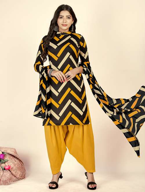 • Look ultra gorgeous in unstitched suits from Anand Sarees and grab these beautiful suits in yellow colour.