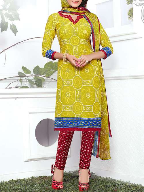 yellow crepe unstitched churidaar suit