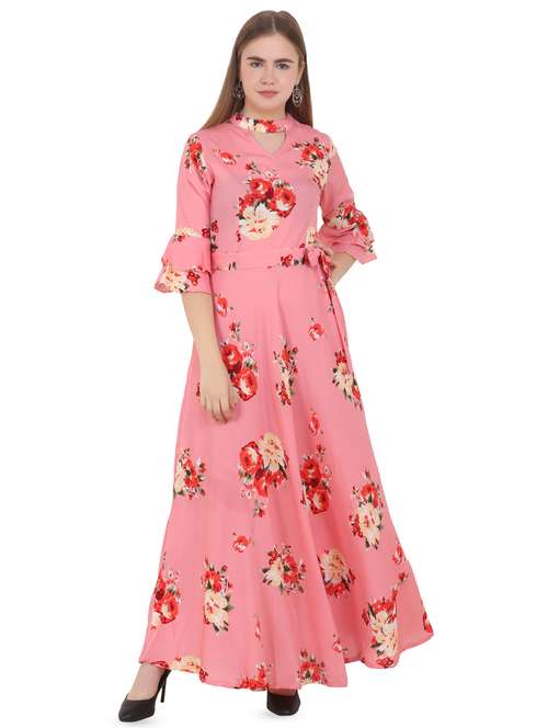 - Dress up in a soothing pattern and don this dress made of crepe material.