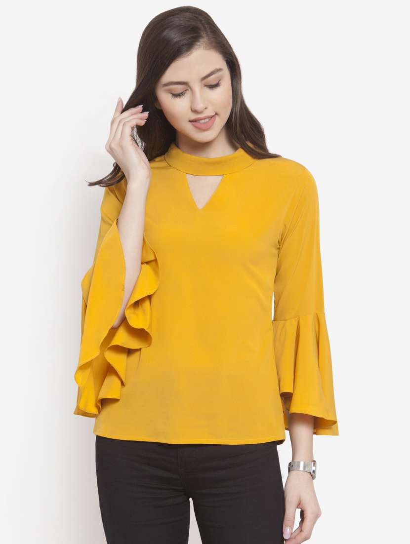 - » keyhole neck ruffle detail top