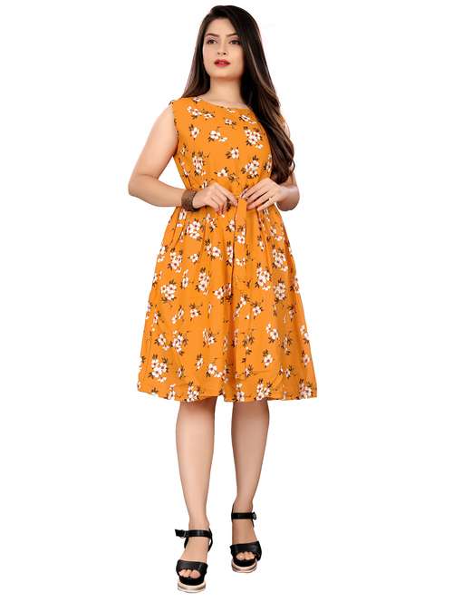 yellow crepe fit & flare dress