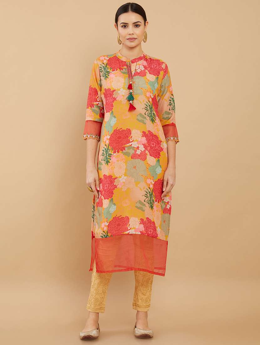- » yellow printed straight kurta