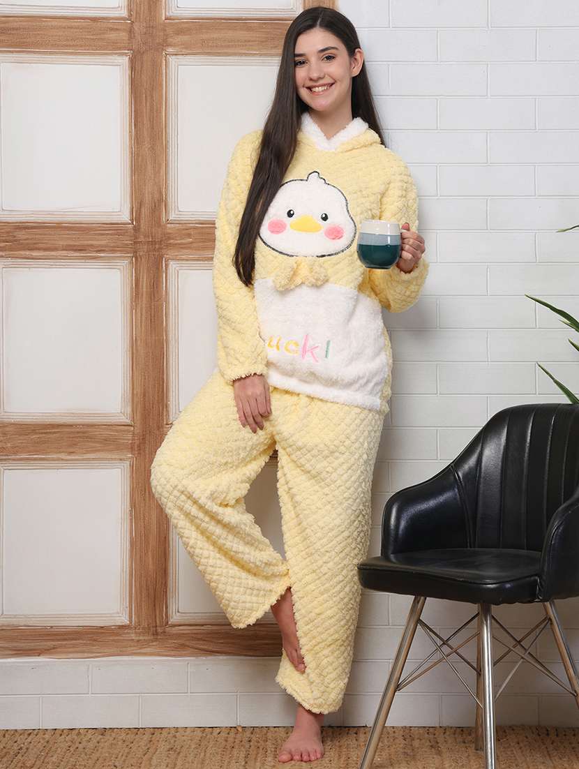 - » women self designed hooded nightwear pyjama set