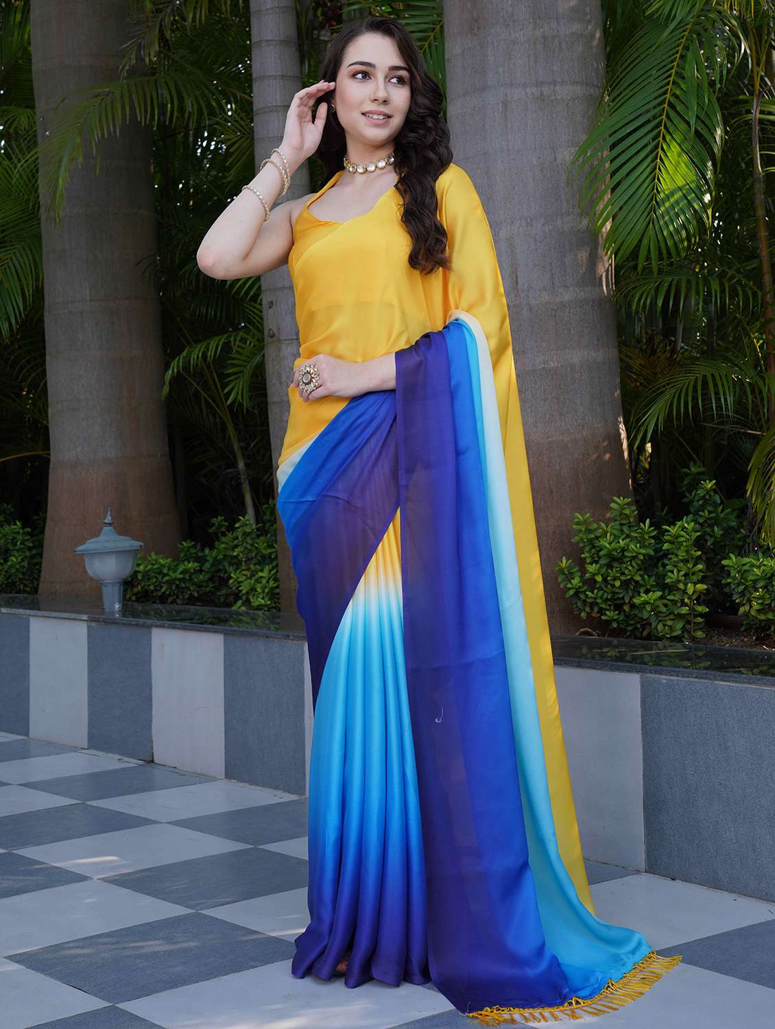 women ombre printed saree with blouse