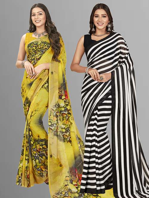 pack of 2 printed casual wear sarees with blouse