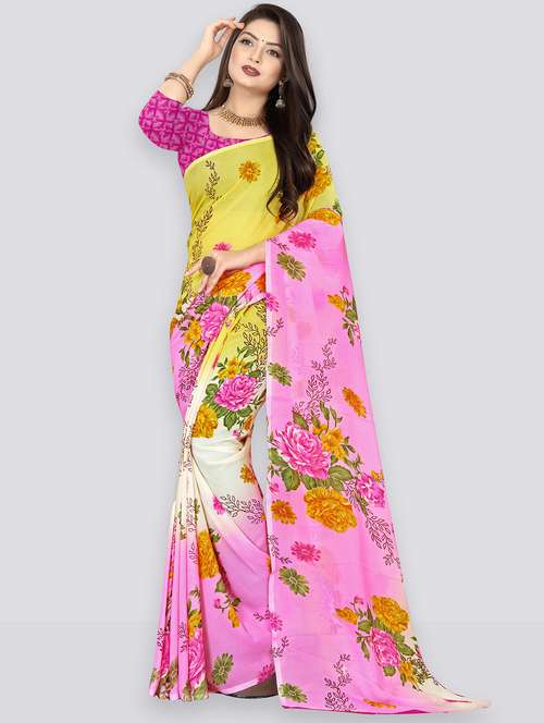 - » women pink floral printed saree with blouse
