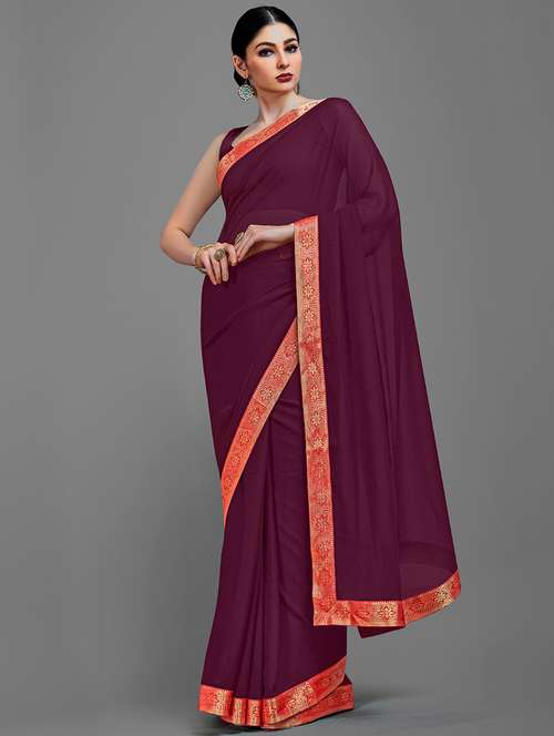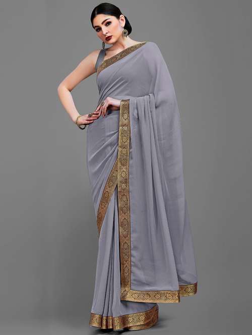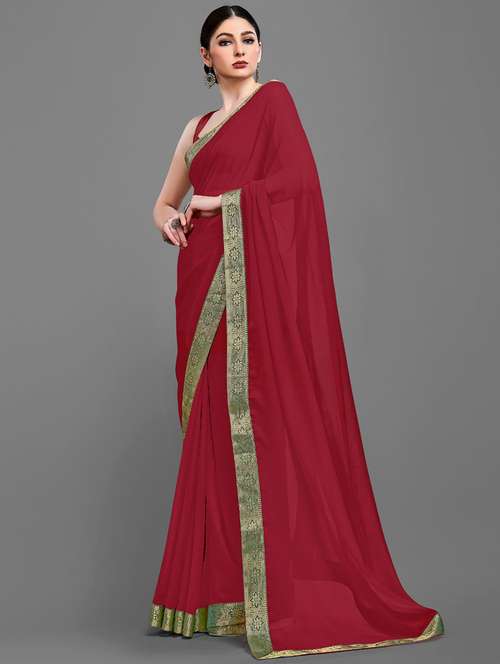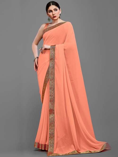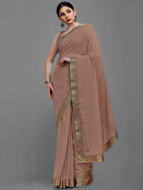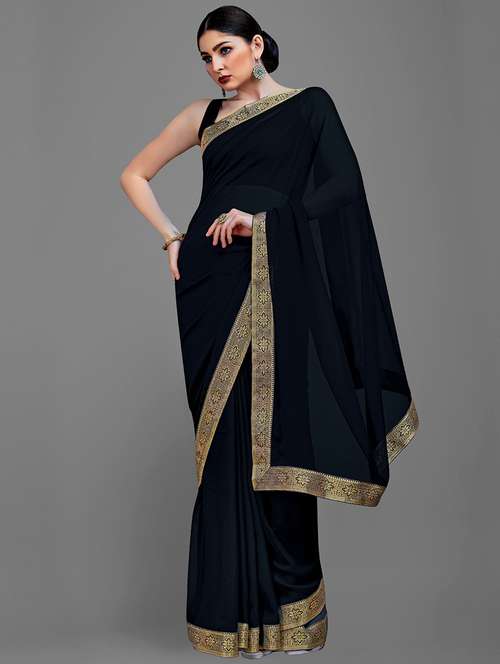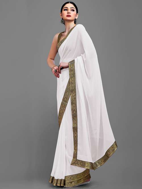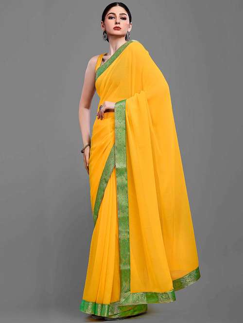 Yellow Georgette Solid Plain Saree with Brocade Lace Border Saree With Unstitched , Solid/Plain Blouse, The Model Is Wearing A Blouse From Our Stylist'S Collection, The Saree Comes With An Unstitched Blouse Piece