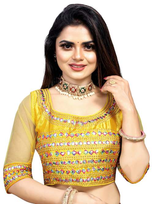 - » yellow embroidered mirror work blouse