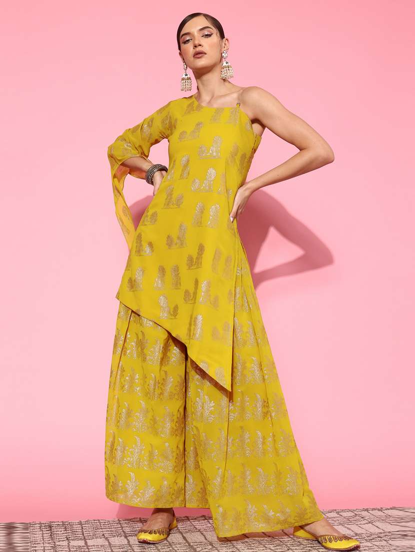 yellow georgette kurta palazzo  set - 20084847 - Very Small Image - 1