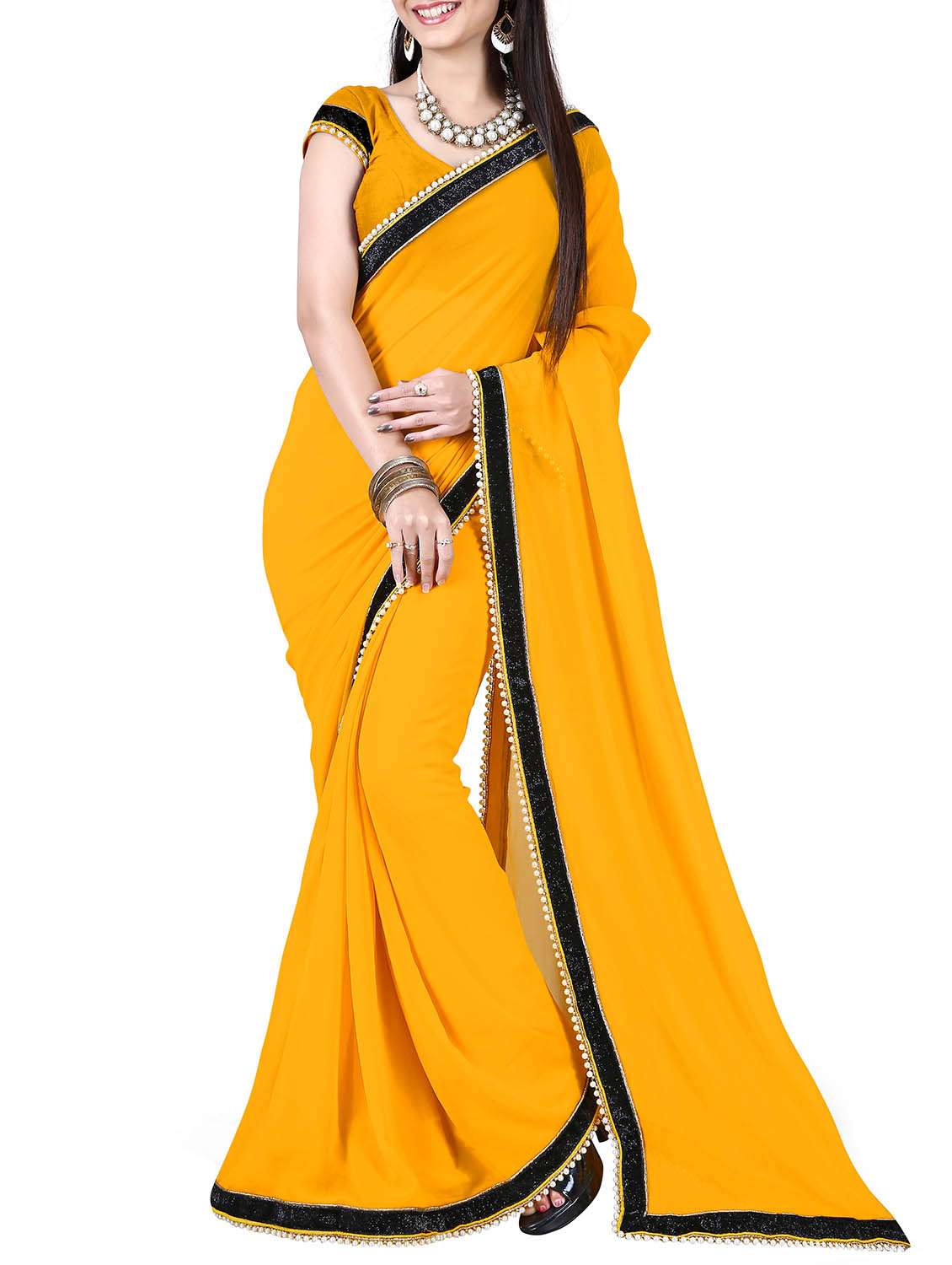 yellow georgette saree with blouse