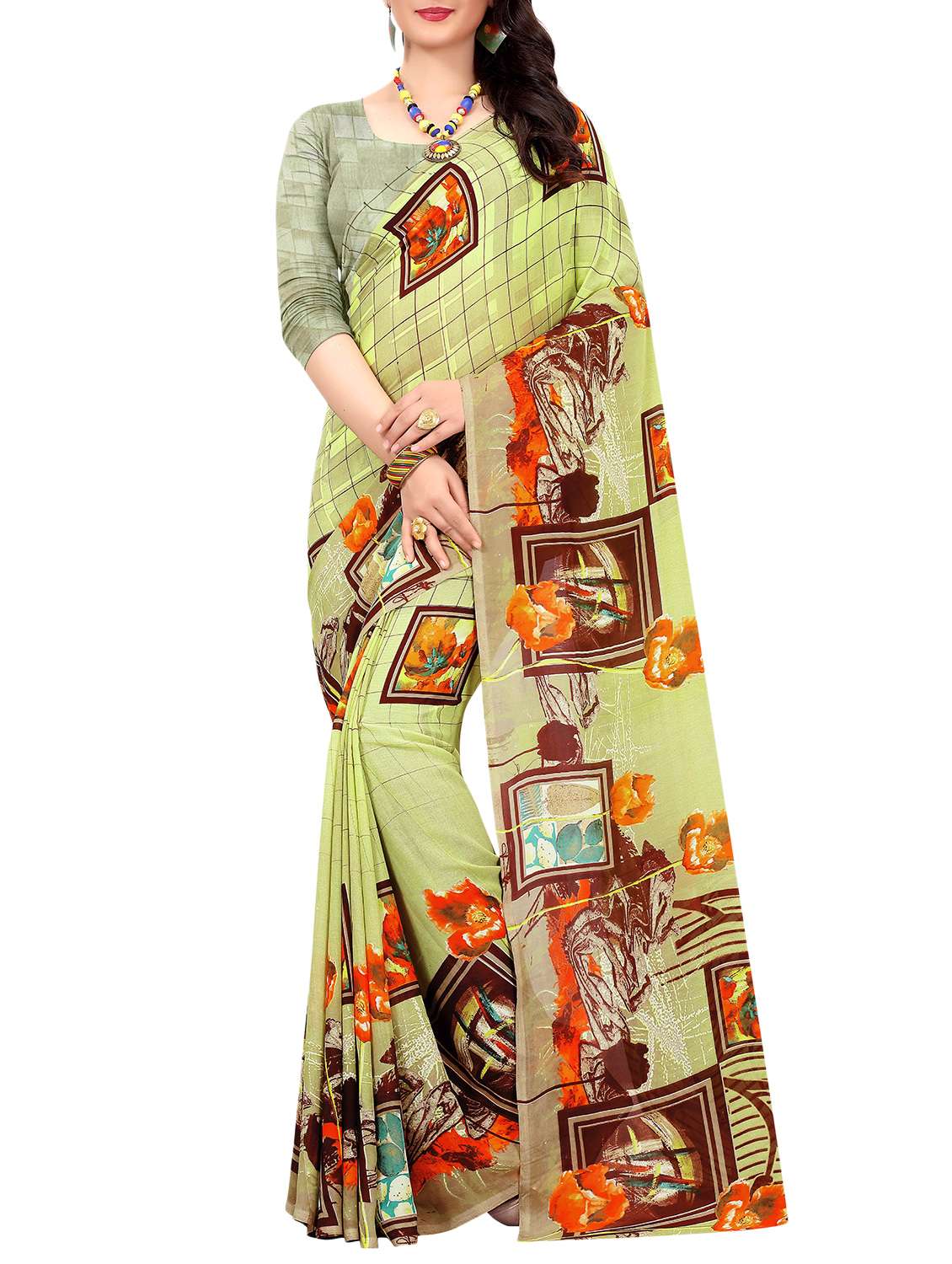 - » checkered floral printed saree with blouse