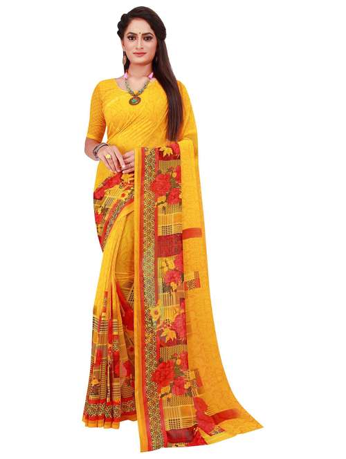women printed casual wear saree with blouse