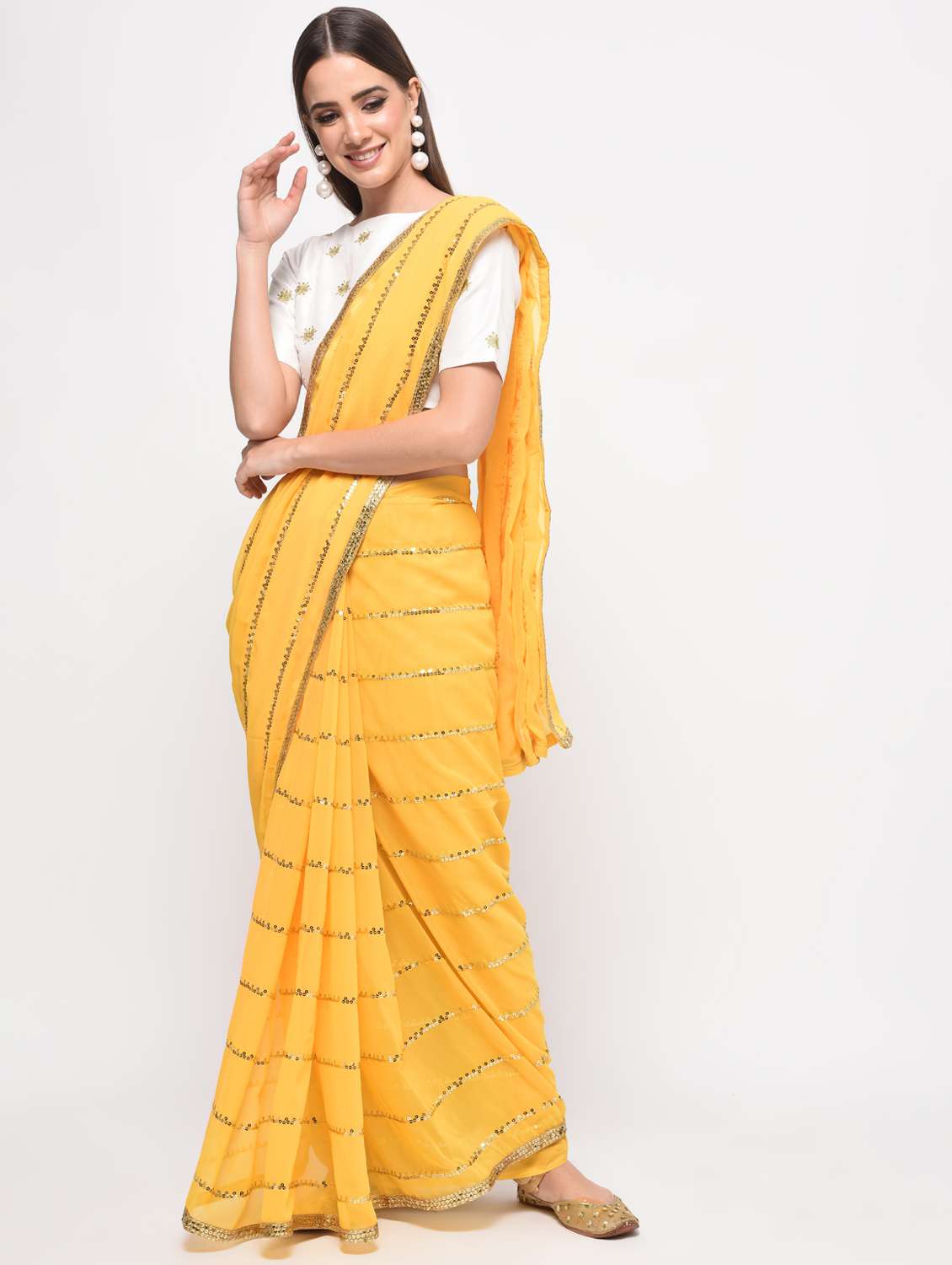 - » sequined leheriya saree with blouse