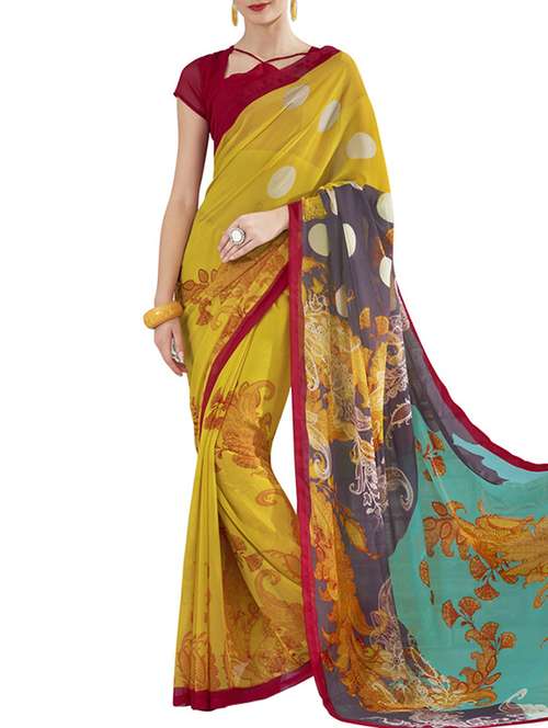 yellow georgette saree with blouse - 12315150 - Very Small Image - 1