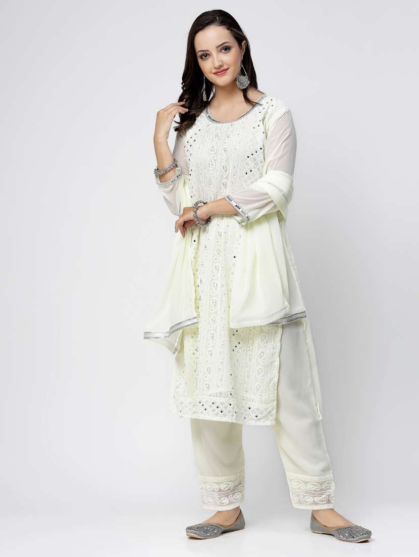 - Browse through the latest range of ethnic sets for women with tailored sleeve designs with mirror work works.