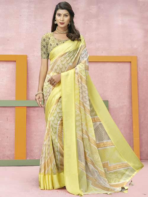 - » yellow colored printed saree with blouse