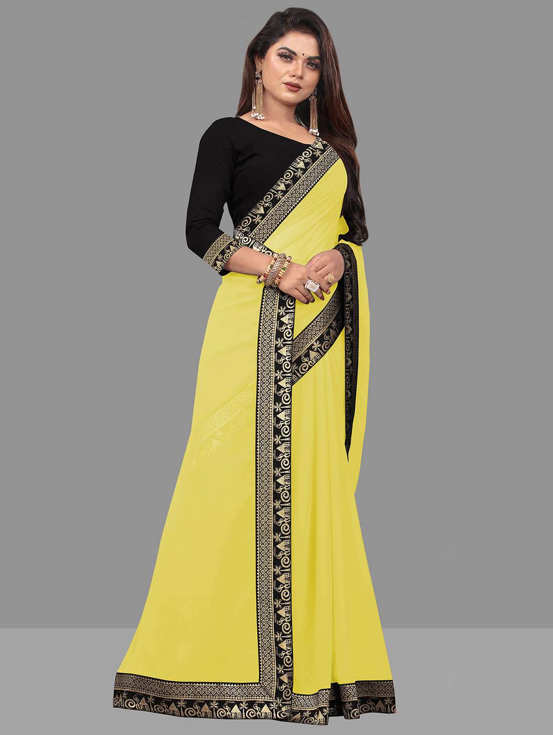 solid lace bordered saree with blouse