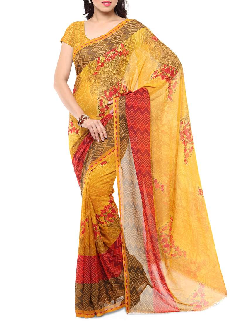 - » yellow georgette saree with blouse