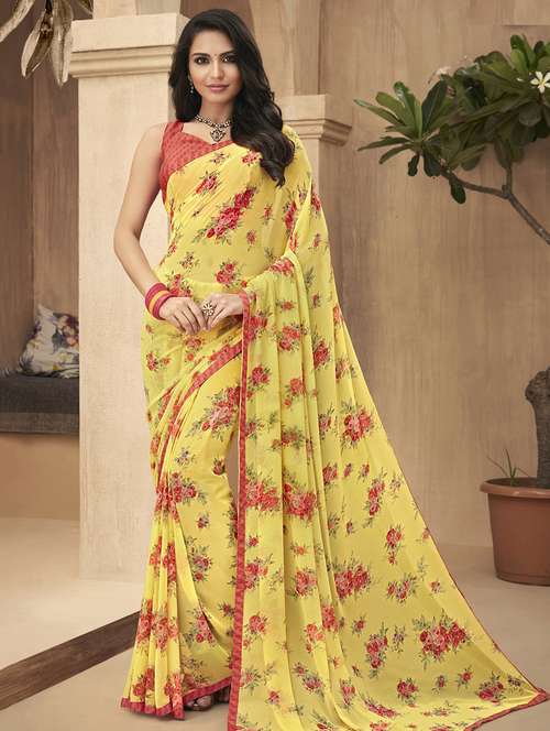 floral printed saree with blouse