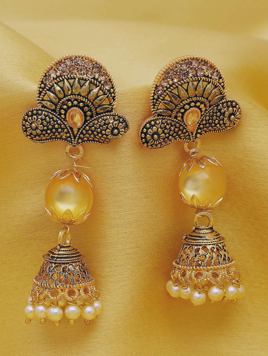 - » yellow gold plated jhumka earring