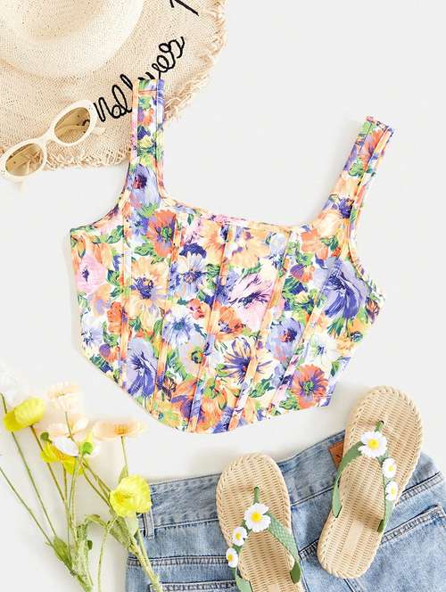- » women floral print corset crop top