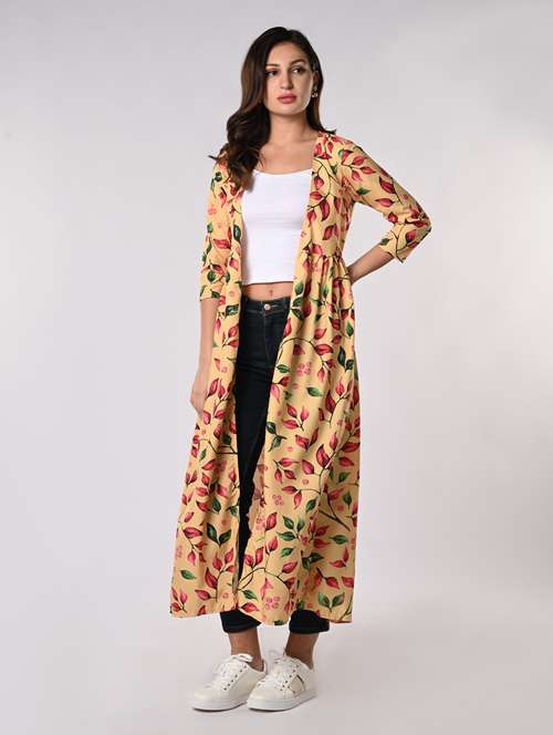 - » women printed three quarter sleeves long shrug