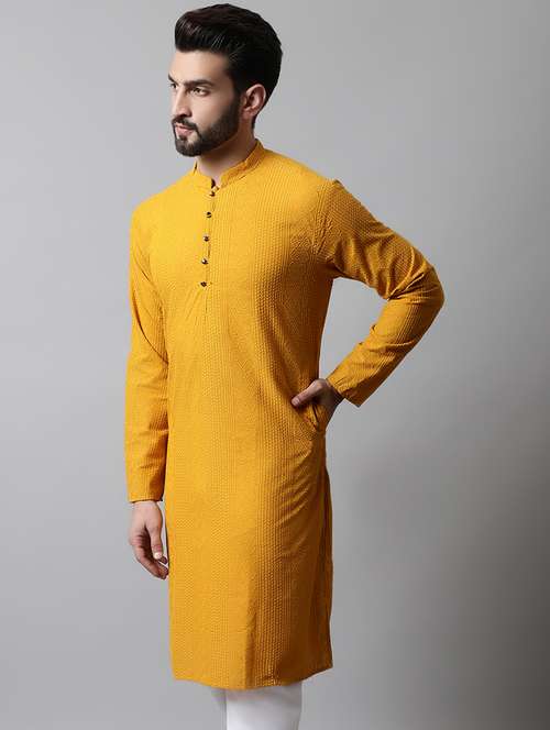 yellow kurta men manyavar