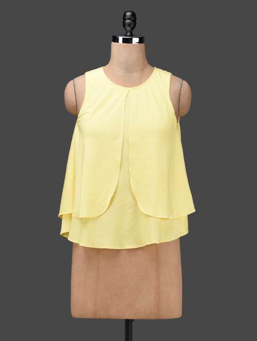 - » Yellow Layered Sleeveless Poly-crepe Top