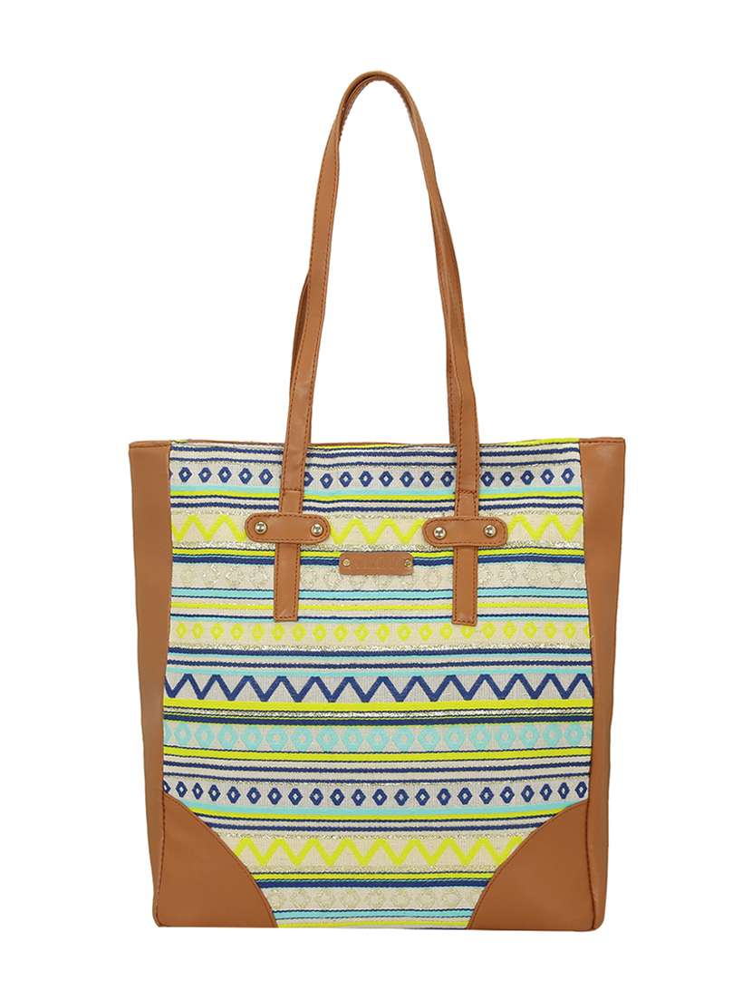 - Expand your bag collection with multi shades of totes handcrafted with jacquard designs having spacious structure to fit in all your essentials.