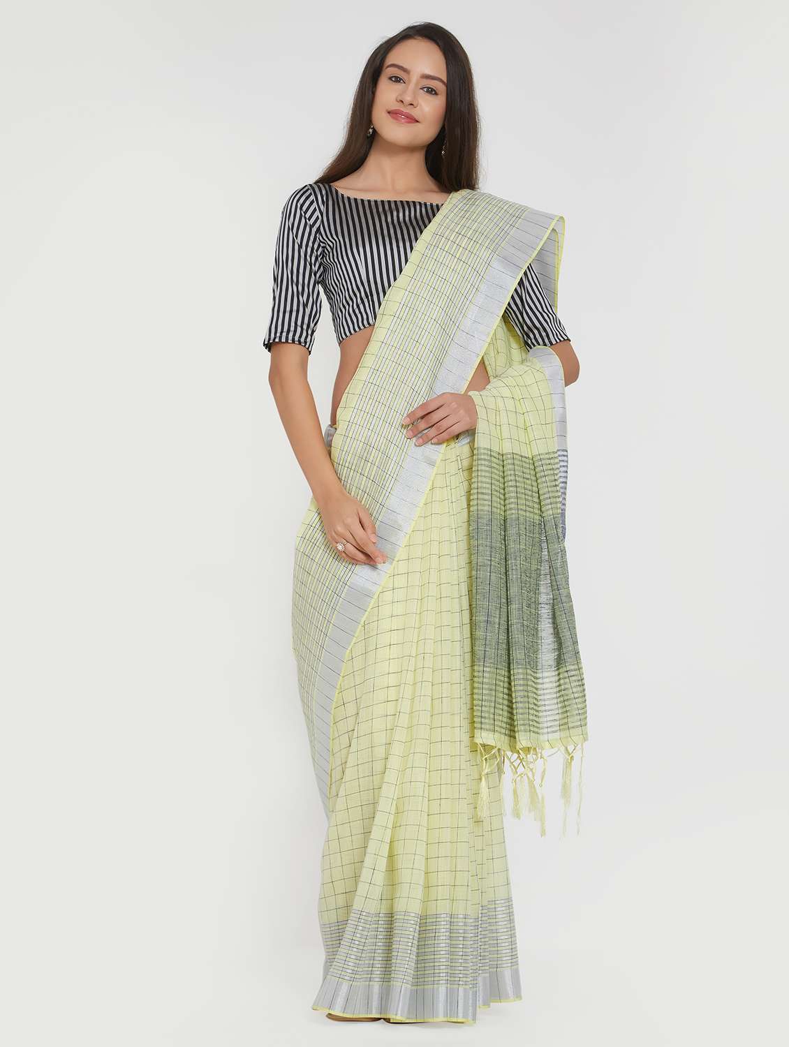 - » checkered linen handloom saree with blouse