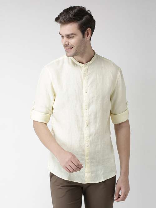 - » yellow solid linen casual shirt