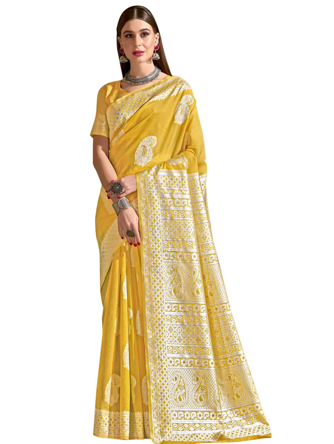 yellow linen saree with blouse - 18265464 - Very Small Image - 1
