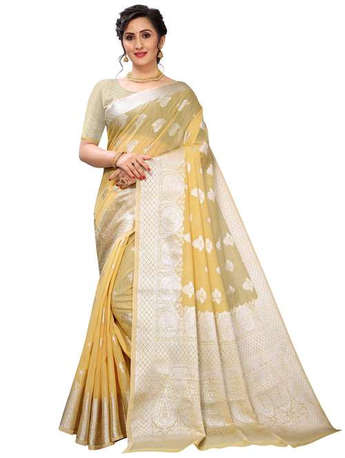 - » yellow linen bhagalpuri saree with blouse