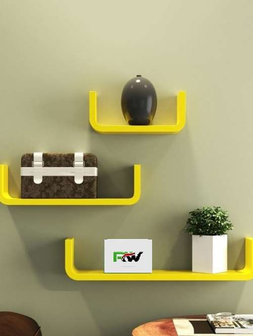 - » home deconation u shaped round coner floating wall shelf set-3 yellow