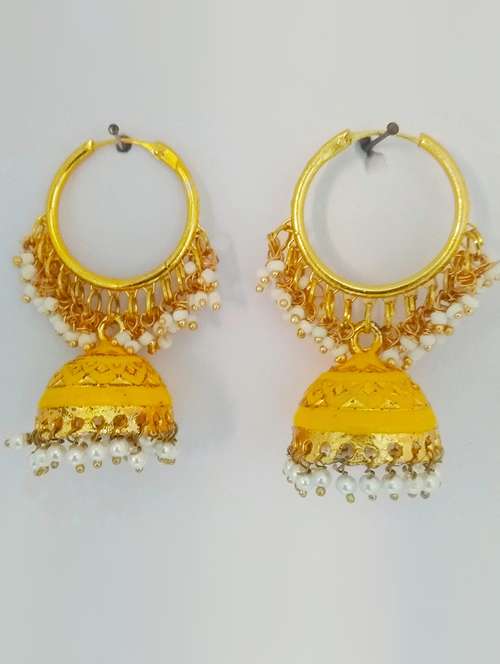 - » yellow metal jhumka earring