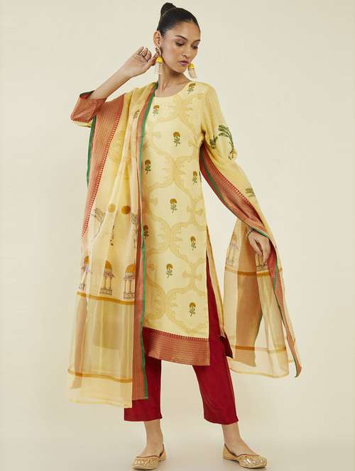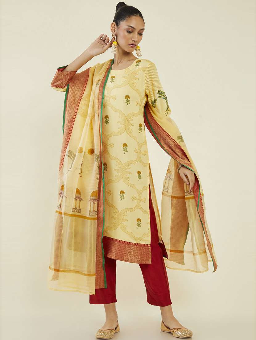 yellow self design suit set