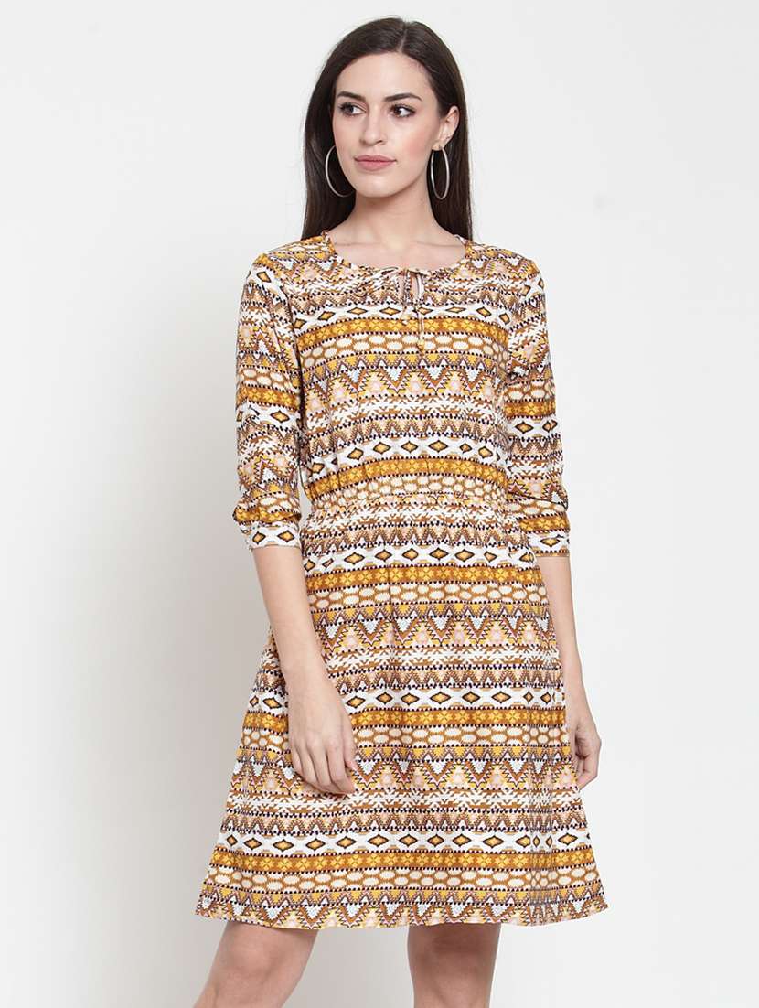 tie up neck aztec a-line dress