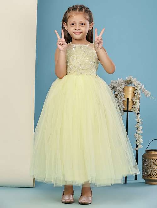 Toy Balloon Kids Yellow Gown Girls Party Wear Dress