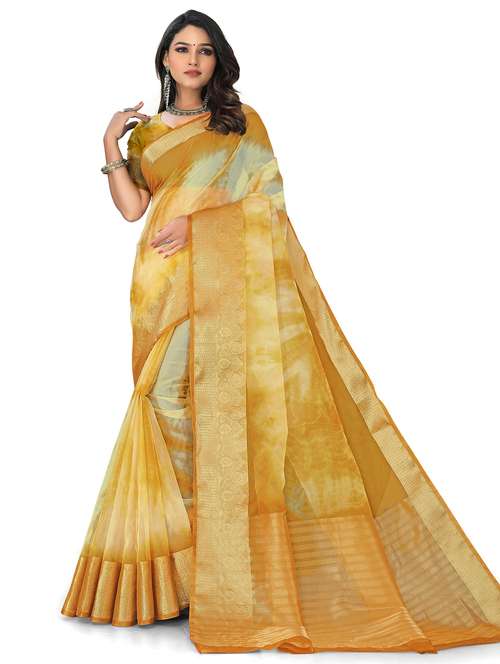 - » women's bordered mustard colored saree with blouse