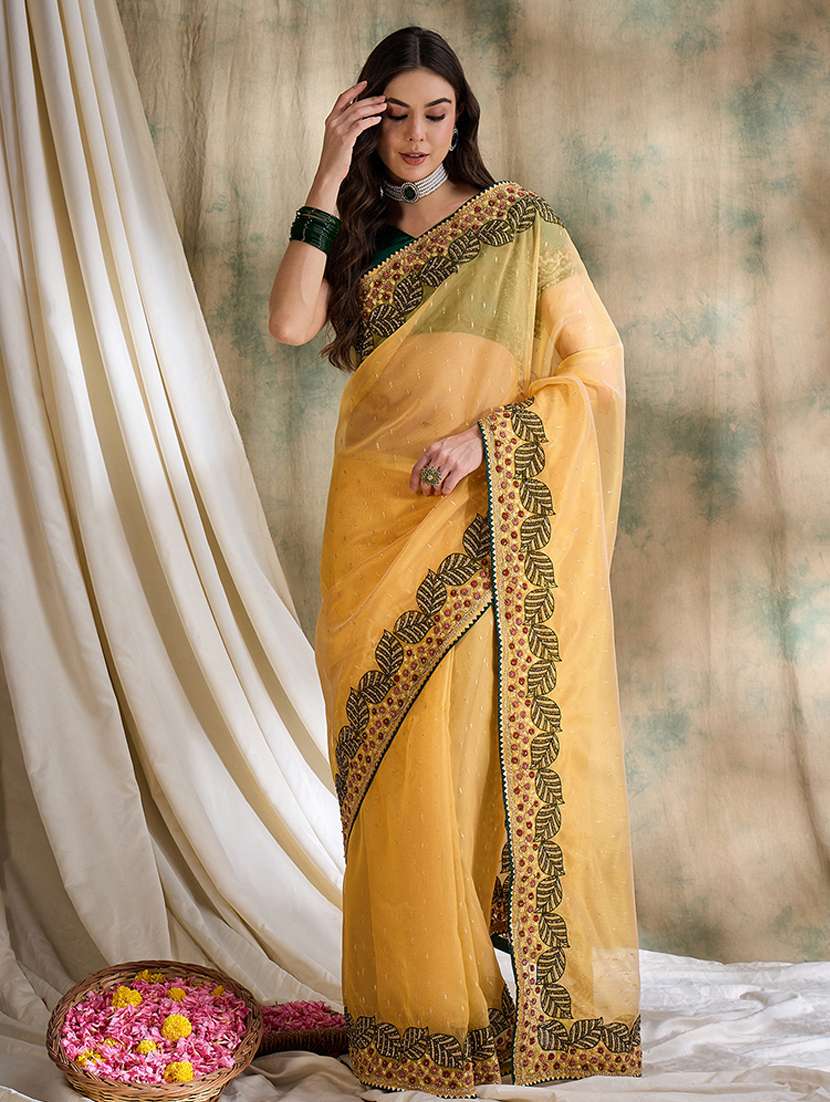 - » women yellow embellished saree with blouse