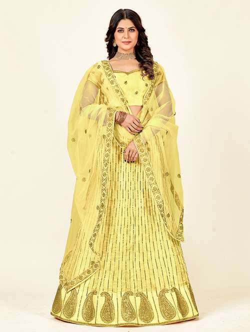 - » yellow sequin detailed flared lehenga