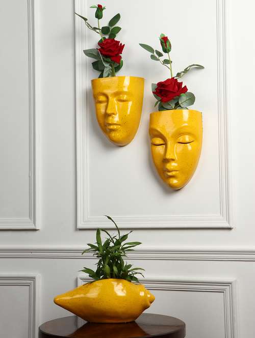 - » set of 3 home decor fiber wall hanging planter pot with table top planter pot, flower pot for home office, indoor planter pot