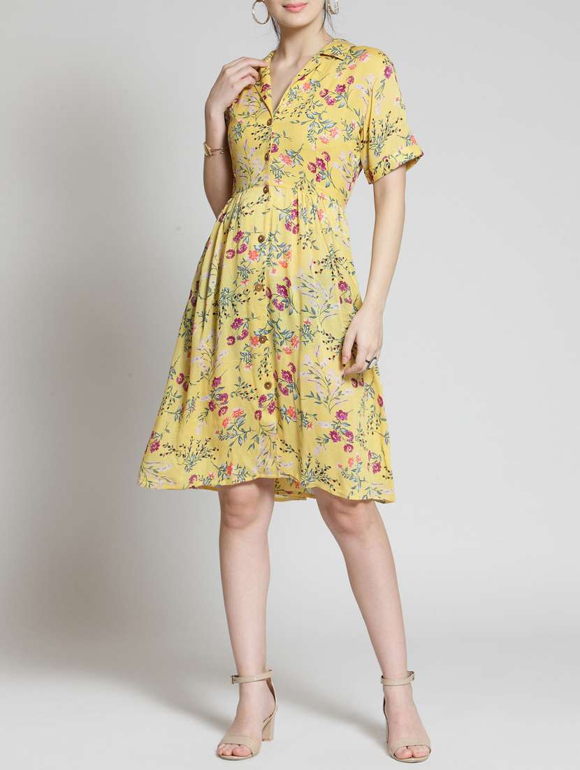 a-line floral button down dress